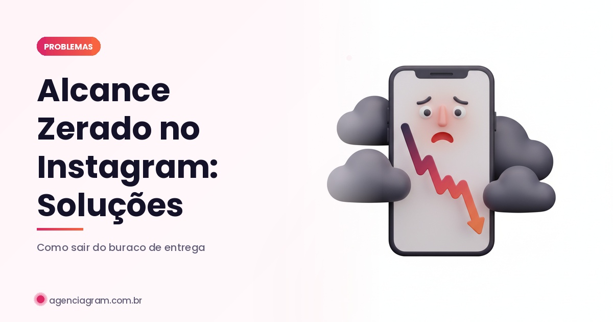 Alcance zerado no Instagram é a situação em que seus posts chegam a menos de 10% da sua base de seguidores e novos usuários deixam de ver seu conteúdo por hashtag, busca ou recomendação. Em 2026, isso acontece com mais frequência por causa do endurecimento do algoritmo contra comportamentos suspeitos e do novo peso do share rate. Dados do Meta Newsroom indicam que a distribuição média de um post orgânico caiu para entre 5% e 12% dos seguidores, tornando crítico identificar rapidamente quando o alcance "sumiu de vez".