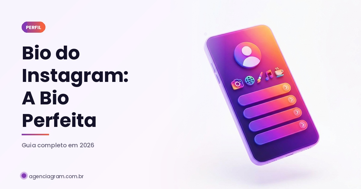 Este guia cobre a estrutura exata de uma bio perfeita em 2026, templates prontos por nicho (criador, profissional, negócio, influenciador), como usar o nome e o username para aparecer em buscas, o que colocar no link, e os erros que custam seguidores mesmo com conteúdo bom. Inclui exemplos reais e justificativa para cada elemento.