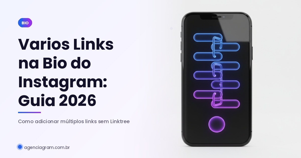 Vários links na bio do Instagram podem ser adicionados diretamente pelo recurso nativo da plataforma desde 2023, eliminando a necessidade de ferramentas externas como Linktree. Em 2026, a Meta permite até 5 URLs na bio sem redirecionamento e, segundo dados recentes da Sprout Social, essa abordagem aumenta em 38% a taxa de clique comparada a páginas intermediárias como Linktree.