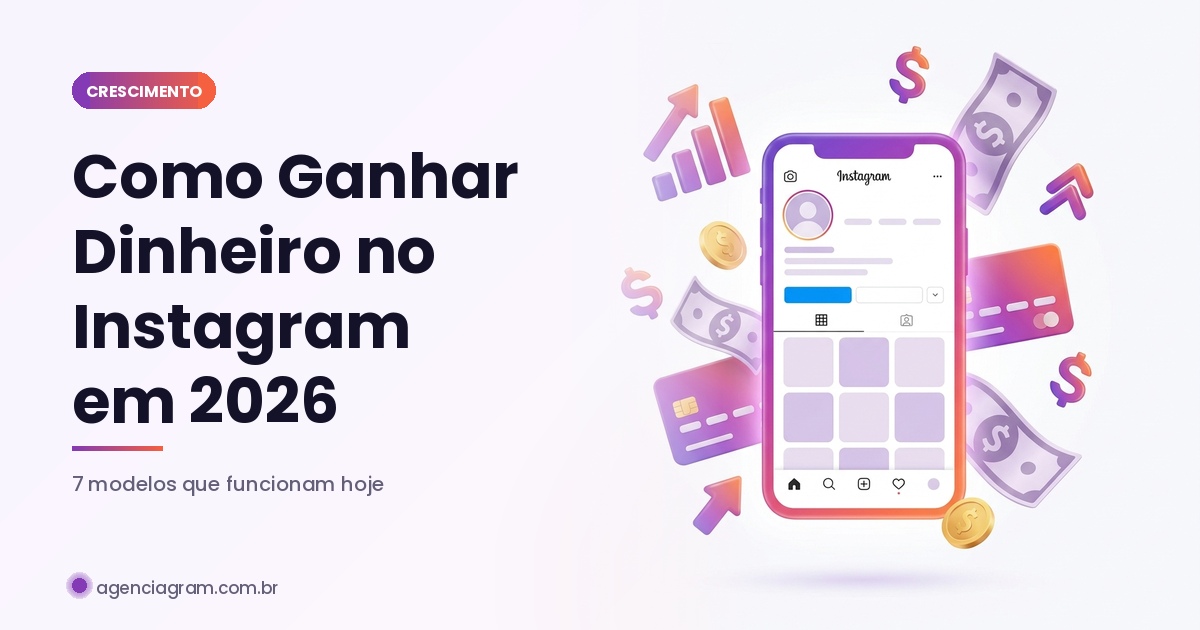 Ganhar dinheiro no Instagram em 2026 significa combinar pelo menos dois dos sete modelos de monetização disponíveis na plataforma — parcerias pagas, marketing de afiliados, Assinaturas, bônus de Reels, Lives com selos, Instagram Shopping e venda de produtos próprios. Segundo dados de 2025 da HubSpot sobre marketing no Instagram, 70% dos criadores rentáveis operam três ou mais fluxos de receita em paralelo — depender de um único modelo é o erro mais comum.