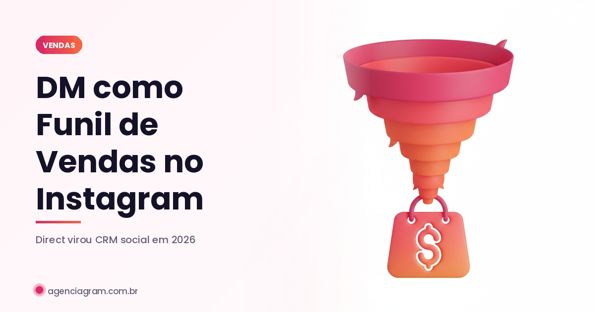 DM do Instagram é a caixa de mensagens diretas da plataforma, usada para conversas privadas entre perfis. Em 2026, o Direct deixou de ser um canal secundário e virou a principal porta de entrada de vendas para milhões de negócios — especialmente serviços, infoprodutos e e-commerce de alto ticket. Segundo dados do Meta Newsroom, mais de 150 bilhões de mensagens são trocadas por dia no Messenger e Instagram Direct, e conversas com contas comerciais cresceram mais de 40% no último ano.