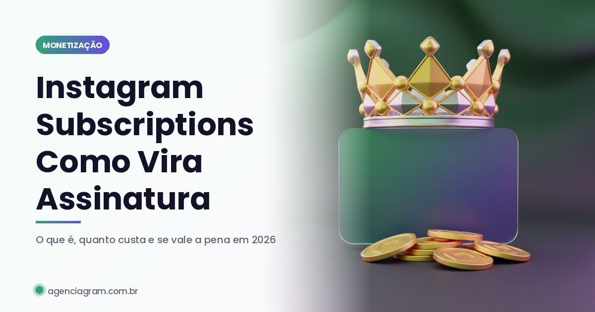 Pra entender melhor a economia de criadores em 2026 e como Subscriptions se compara com outras formas de monetização, vale ler também como ganhar dinheiro no Instagram — Subscriptions é uma das 7 formas, e nem sempre é a primeira que faz sentido.